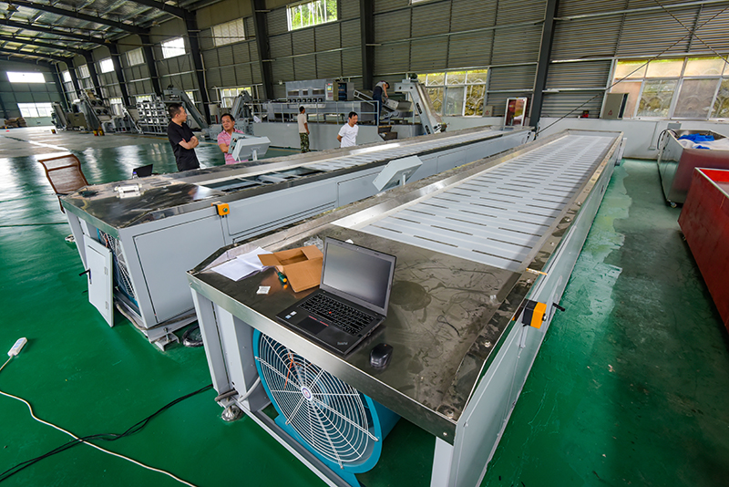 “這是一組岳西翠蘭智能化、數(shù)字化大型生產(chǎn)設(shè)備,自動化數(shù)控完成萎凋(攤青)、熱烘、微波殺青、集成化理條成型、回潮緩蘇、焙干提香、風選、色選分級、包裝等十幾套工藝流程,從鮮葉進料到成品包裝無需人工操作,設(shè)備一鍵啟動,數(shù)字傳輸,方便又省工、省力、省心,干茶質(zhì)量明顯高于傳統(tǒng)機械設(shè)備。”7月3日,筆者來到位于岳西縣菖蒲鎮(zhèn)安徽綠月茶業(yè)有限公司采訪,在茶葉加工車間,來自浙江工業(yè)大學趙章風博士和幾位專業(yè)工程師們正在用調(diào)試一臺一臺機組。綠月公司董事長宋根全指著一排大型茶葉智能化加工設(shè)備告訴筆者,今年公司添置了這套大型自動化智能化數(shù)字化生產(chǎn)線,主要是提升企業(yè)整體生產(chǎn)能力,降低企業(yè)生產(chǎn)成本,進一步提升岳西翠蘭茶的品質(zhì)。